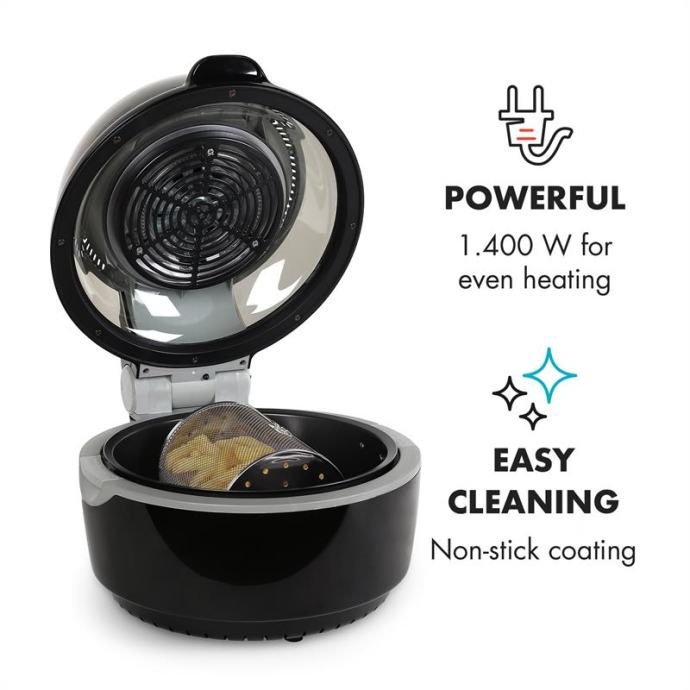 Klarstein VitAir je futuristični cvrtnik s tehnologijo hitrega prehoda vročega zraka, ki bo temeljito spremenil kuhinjske rituale globokega cvrtja, žara in pečenja, saj so vse tri funkcije v tem večnamenskem mojstrskem pripomočku združene.