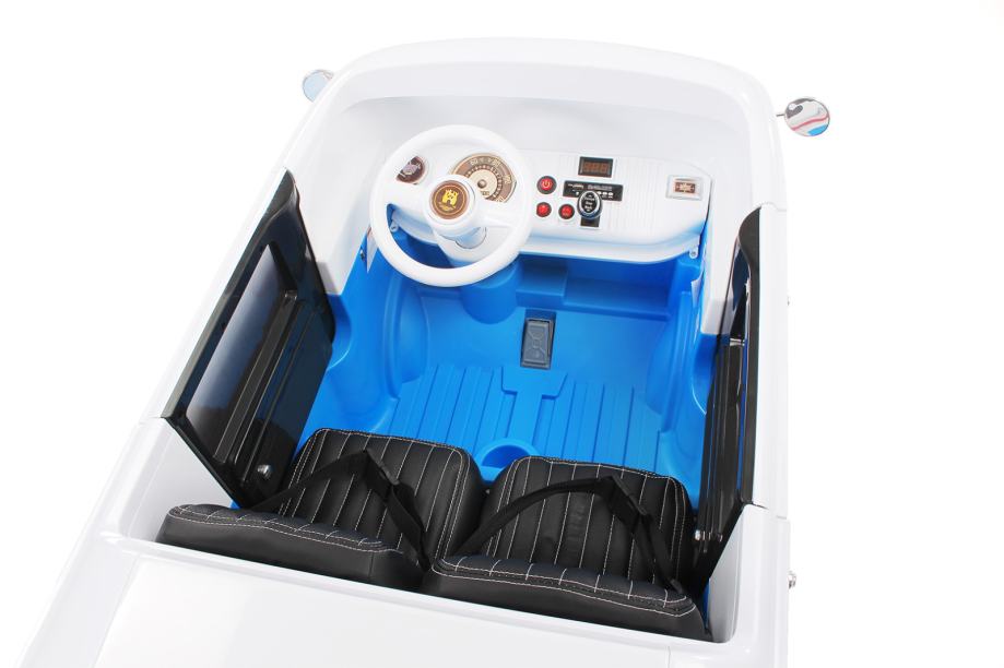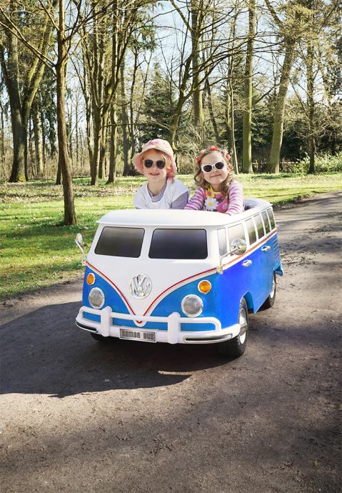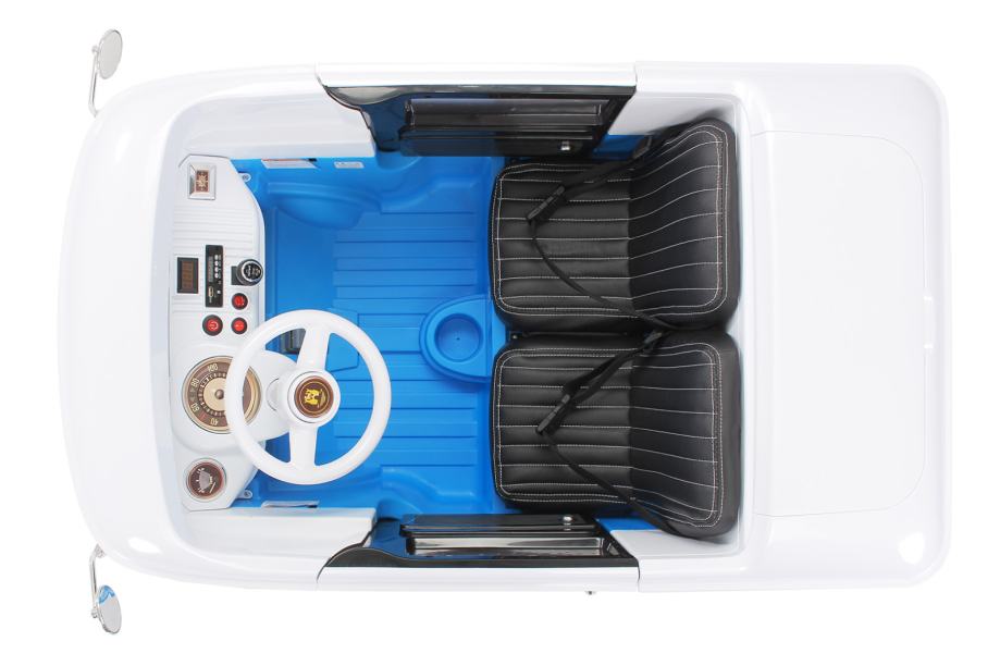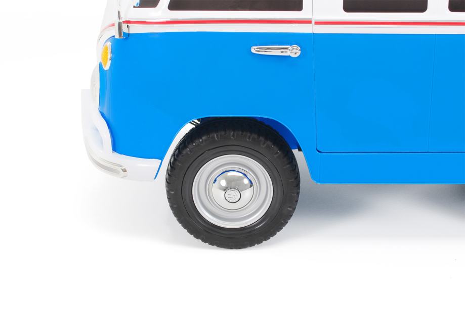 Vsaka podrobnost tega otroškega električnega avtomobila temelji na velikem modelu. Z največjo nosilnostjo 40 kg lahko dva mlada voznika sedita na udobnih usnjenih sedežih in dobesedno izkusita, kaj dela VW Bulli tako posebnega. Zahvaljujoč vzmetnim pnevmatikam so zagotovljena udobna potovanja, obsežen zvočni modul pa prispeva k sproščeni vožnji v tem električnem avtomobilu za otroke.