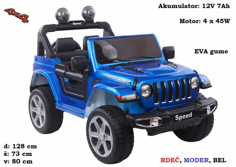 Otroški Jeep FT-938 4x4; akumulator 12V (moder, bel, rdeč ali roza)