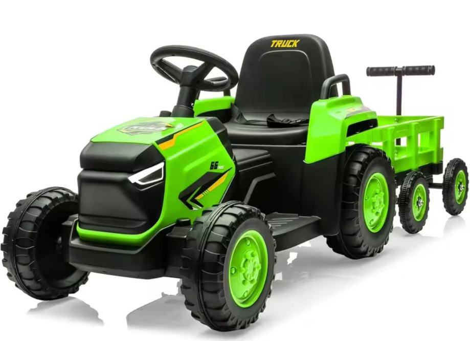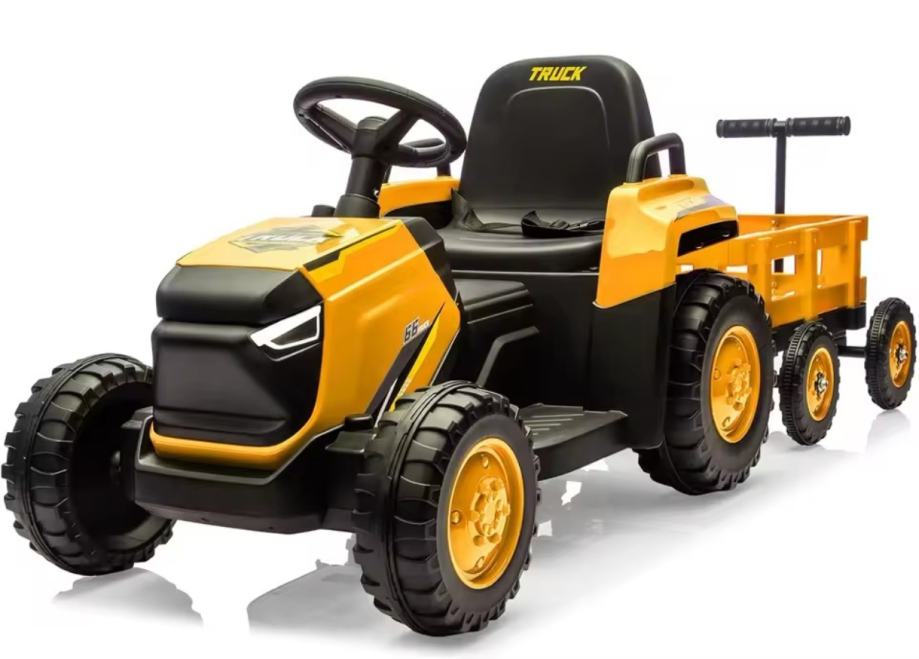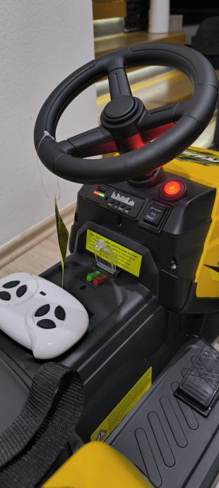 - Otroški električni traktor je opremljen z daljinskim upravljalnikom, starši pa lahko nadzorujejo in upravljajo gibanje traktorja, kar zagotavlja večjo varnost otrok. Traktor otrokom omogoča, da ga sami upravljajo s pomočjo pedala in volana