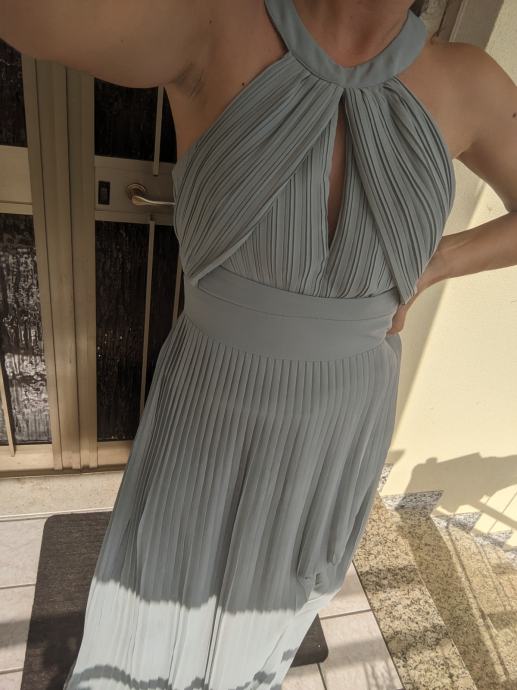 Elegantna obleka primerna za maturantski ples ali poroko. Noseno sem imela samo enkrat. Obleka lepo poudari postavo, naredi lepe boke, ozek pas in dolge noge. Je elegantna a hkrati mladostna.