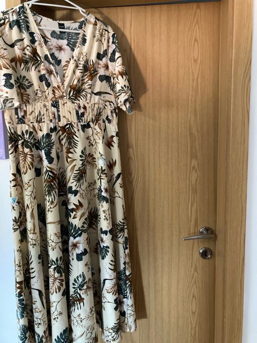 Prodam dolgo žensko obleko. Lepo padajoč material, brez mečkanja. Obleka je nova, ob strani ima zadrgo. Dolžina 130 cm, čez prsi meri 45 cm. V ceni je že poštnina.