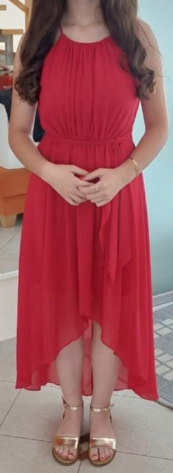 Prodam obleko rdeče-fuksija barve, znamke Jakes, kupljeno v P&C, primerno za valeto (kot nova, le 1 krat nošena na valeti). Obleka je brez rokavov, s tankimi naramnicami, z asimetrično dolžino - spredaj krajša, zadaj daljša, z zadrgo na hrbtni strani. Kroj je ženstven, z elastičnim pasom v pasu, ki lepo poudari postavo. Material je lahek in zračen poliester (velikost 38). Cena je 60 EUR z vključeno poštnino. Mogoč ogled in osebni prevzem v Mariboru z okolico, sicer pošljem s priporočeno pošiljko po predhodnem nakazilu na TRR.