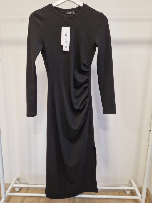 Črna obleka iz debelejše tkanine znamke Stradivarius.