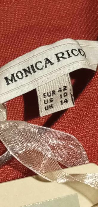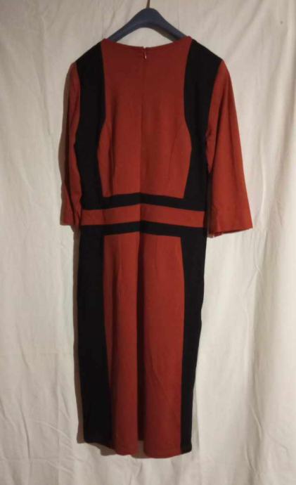 Prodam zelo lepo novo obleko Monica Ricci, primerno za hladne dni. Dolžina obleke je 108 cm, pas je 80 cm. Na hrbtu je zadrga za lažje oblačenje. Material je raztegljiv, zato se obleka lepo prilega telesu. Navedena velikost na etiketi je sicer 42, vendar je v resnici nekoliko manjša, geometrijski vzorec pa lepo poudari postavo.