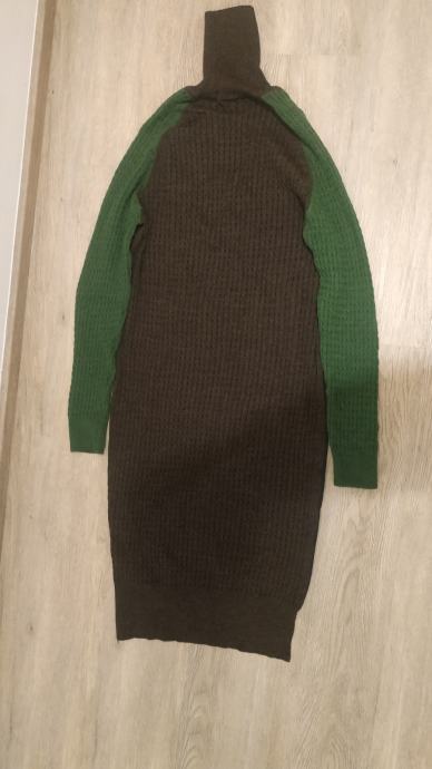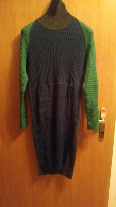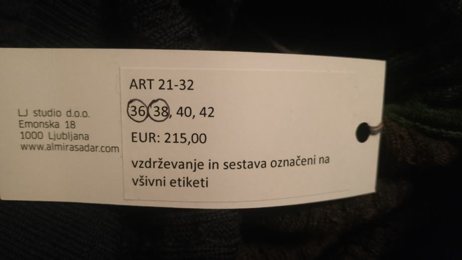 Obleka priznane slovenske znamke nikoli nošeno. V okolici Kranja možna dostava in pomerjanje obleke. Slike niso ravno najboljše. Narejena iz 100% merino volne. Barvne kombinacije,temno modra ,rjava in zelena.