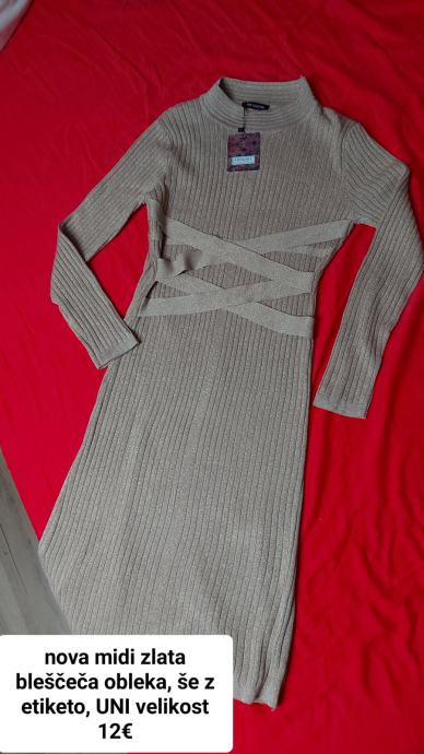 Nova zlata obleka z zlatimi nitkami, bombaž in spandex. UNI velikost.