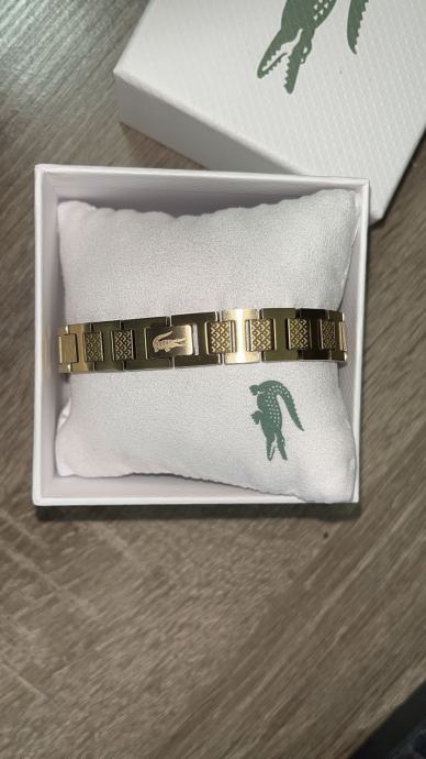 Prodam zlato Lacoste zapestnico. Nosena je le parkrat in pa kot nova, zraven prilozim se original skatlo. Za vec informacij me kontaktirajte na tel. stevilko 069 719 359!