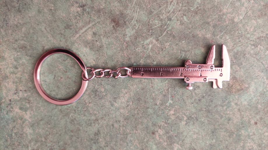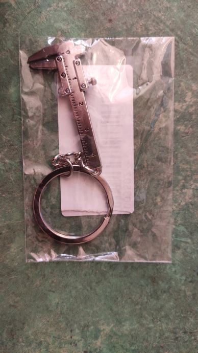 Jeklen obesek je nov in v embalaži. Dolžina kljunastega merila na obesku je 52 mm. Tudi na obesku je merilo premično.