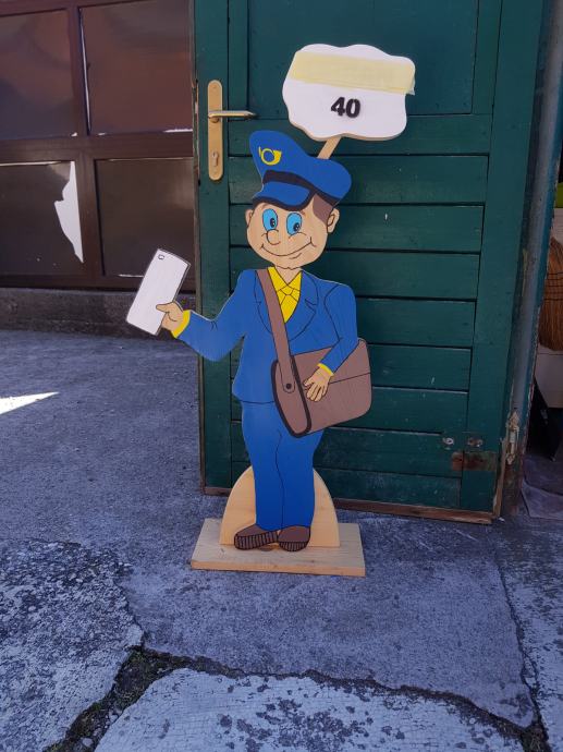 Prodam leseno skulpturo poštarja. Leta in ime lahko napišete po želji. Lahko se razstavi.
