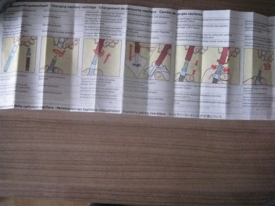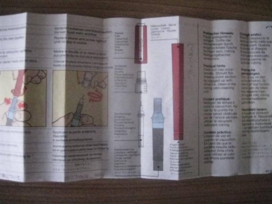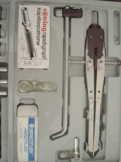 Komplet je rabljen, vendar zelo dobro ohranjen. Priložena so tudi navodila za pravilno uporabi in vzdrževanje rapidografov.