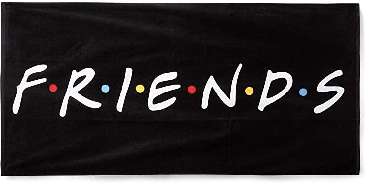 KUPIM tako kopalno BRISAČO - črno z napisom FRIENDS (iz te istoimenske meni zelo priljubljene TV serije). Dimenzije: 150cm x 75cm.