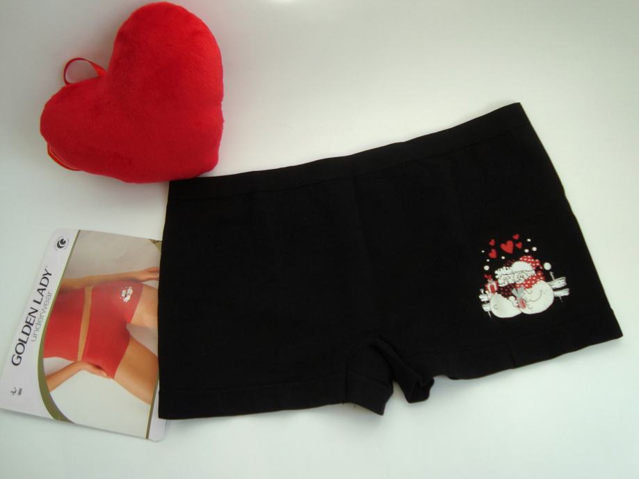 Nove, zapakirane v originalni embalaži: črne boksarice z nizkim pasom v črni barvi z bleščečo aplikacijo dveh zaljubljenih snežakov (culottes underwear low waist).