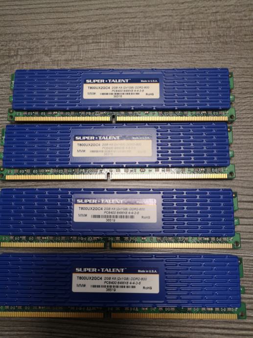 Prodam izredno kvaliteten ram ddr2 Super talent 2x1gb s hladilnikom proti pregrevanju. Dva uparjena kompleta.