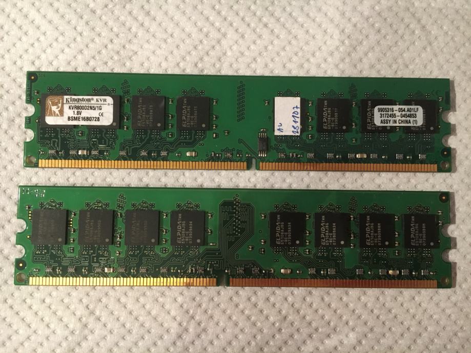 * KVR800D2N5/1G 1 GB 800 MHz DDR2 Non ECC CL5 DIMM (KVR800D2N5/1G Kingston 1GB PC2-6400 DDR2-800MHz non-ECC Unbuffered CL5 240-Pin DIMM Dual Rank Memory Module) (Cena: 30 eur za kos ali 50 eur za komplet 2x 1GB)