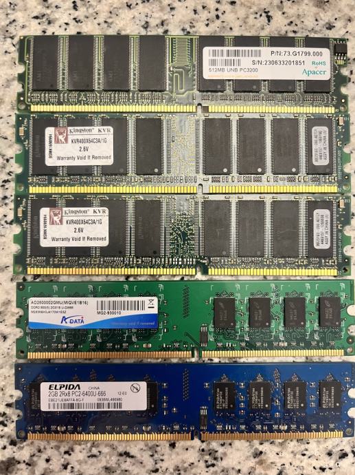 Prodam komplet RAM pomnilnikov – DDR1, DDR2, DDR3 (10 modulov)