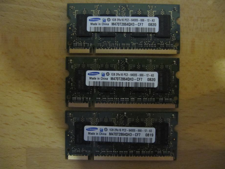 3x 1GB, DDR2, PC-6400, 800MHz, 5 €/kom, 3 kom. Cena za 3 skupaj je 15 €. Original Apple tovarniška vgradnja. Odlično ohranjeni. Prevzem moren v MB ali LJ. Pokliči ali pošlji SMS na 041 545 979 ali piši na guru545@gmail.com.