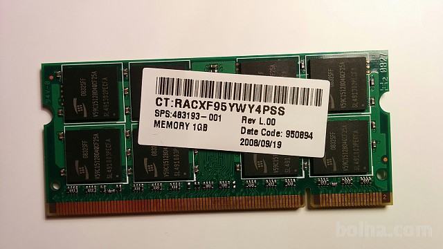 Prodam 1 GB ram za prenosnike. Ploščica deluje s hitrostjo 800 MHz in je tipa DDR2.