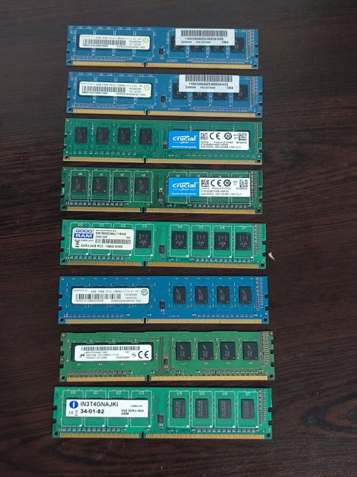 Prodam rabljene rame DDR3 4GB 1600Mhz, različni proizvajalci.