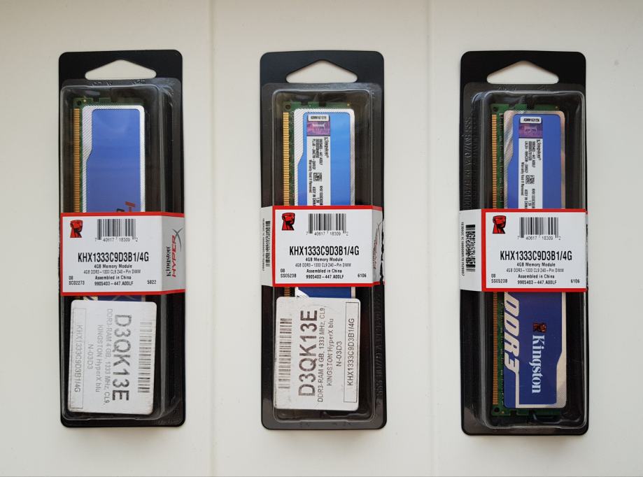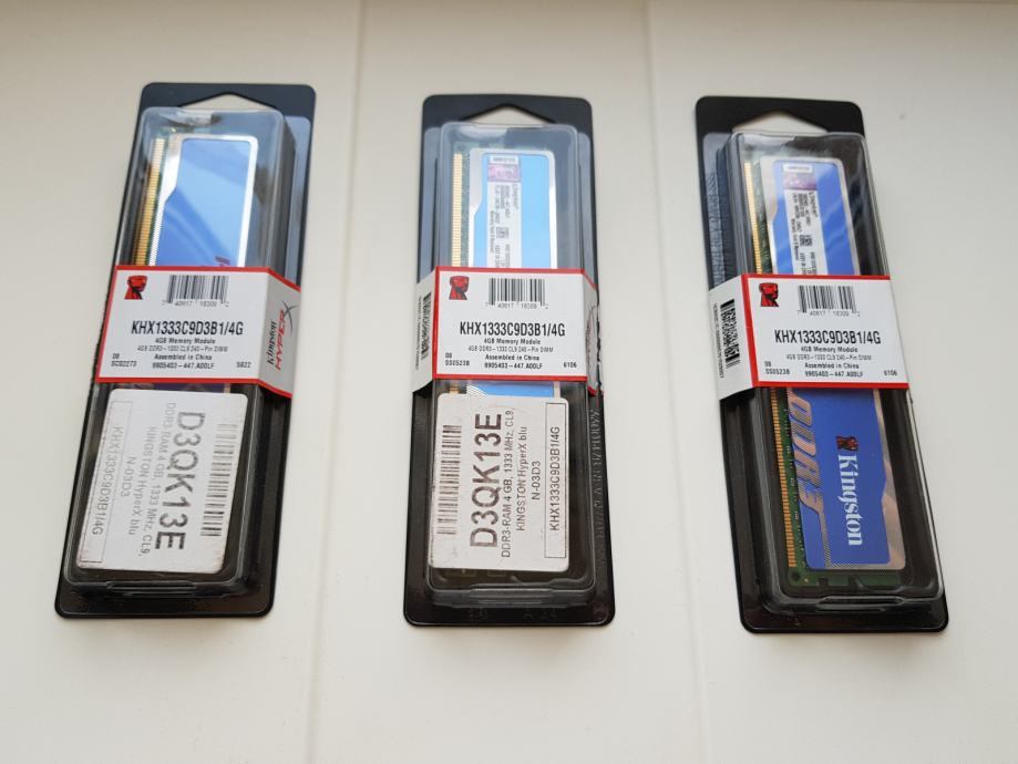 3x Kingston Technology HyperX Blu 4GB 1333MHz DDR3 CL9 DIMM za skupnih 12GB. Odlično ohranjen DDR3 pomnilnik s "heatsinkom", v originalni embalaži.