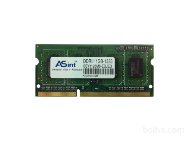 PRODAM, ASINT RAM 1GB 1333 DDR3 LAPTOP SO-DIMM 204-PIN SSY3128M8 VZETI SO BILI Z NOVEGA PRENOSNIKA
