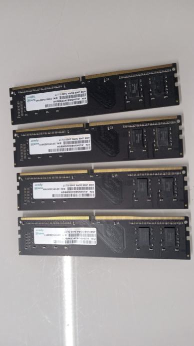 Prodam v kompletu štiri spominske module po 4Gb, skupno 16Gb hitrosti 2400Mhz znamke Apacer