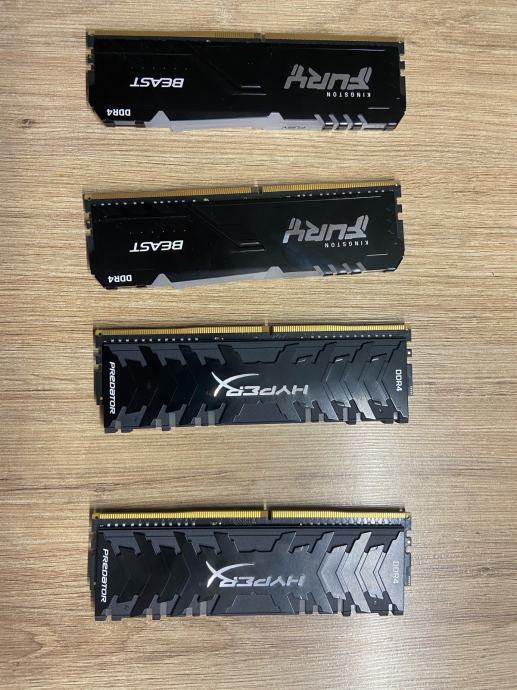 Prodajam 4 ddr4 rame vsi so kompatibilni, sam sem jih uporabljal kakšno leto. 2x hyper x predator 8gb, 2x hyper x fury beast 8gb. Vsi štirje so frekvence 3200. prodajam zaradi tega ker se mi je uničil en ram slot na matični plošči in ne morem uporabljati vseh štirih. Za več informacij mi pišite na 070-845-453.