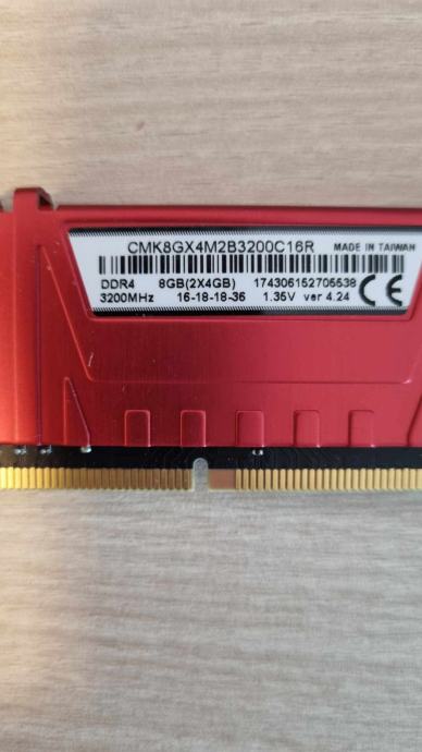 Prodam odlične rame CORSAIR VENGEANCE LPX DD4 3200Mhz 2x4GB(8GB), rdeče z aluminijastim ohišjem za dodatno hlajenje.