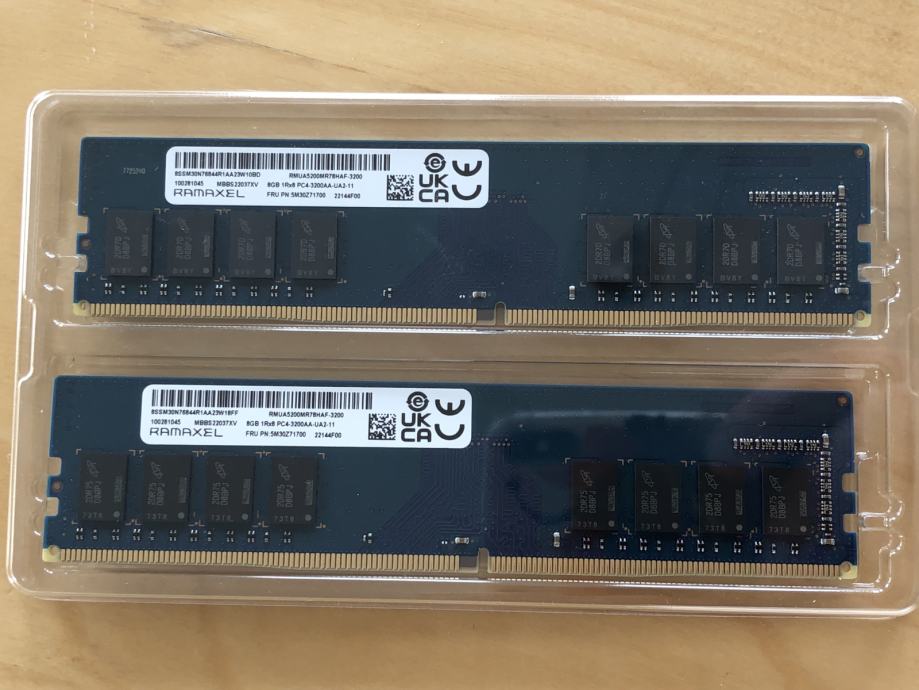 2 x 8Gb Ramaxel PC4-3200AA-UA2-11 DDR4 pomnilnik iz Lenovo IdeaCentre Gaming 5 Gen 7 Gaming Desktop računalnika kupljenega marca 2023.