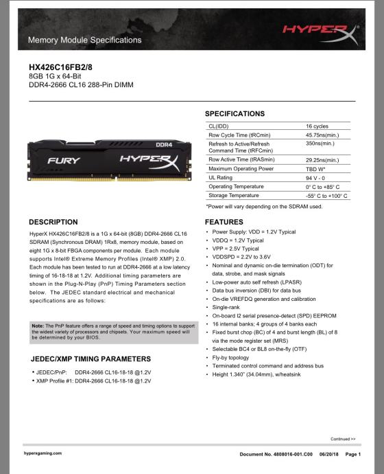 Prodam spomin Kingston Hyperx DDR4 2666 2x 8GB.