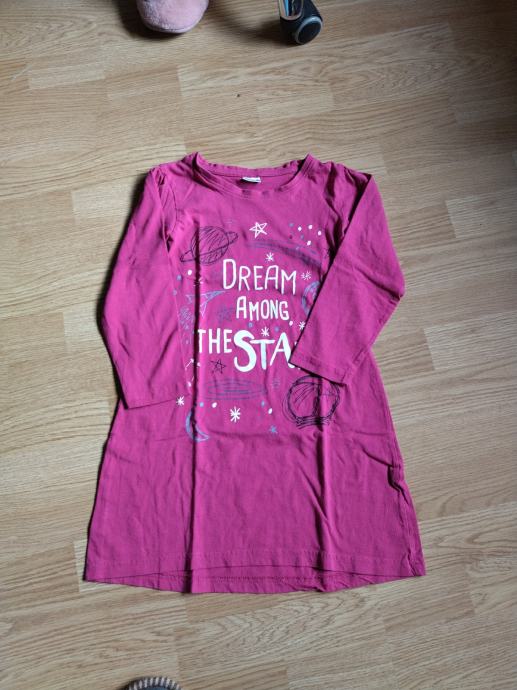 Prodam dekliško daljšo majico, ki jo ima lahko za na pajkice ali kot spalni majico. Velikost 110/116. Zelo malo rabljena.