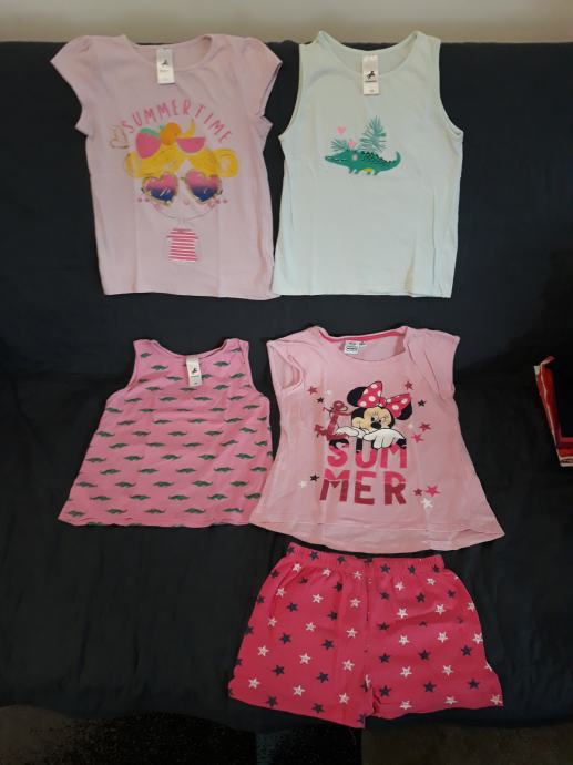 Prodam ohranjeno pižamo mini št:128, eno majičko kratek rokav in dve majički brez rokavov velikost 128.