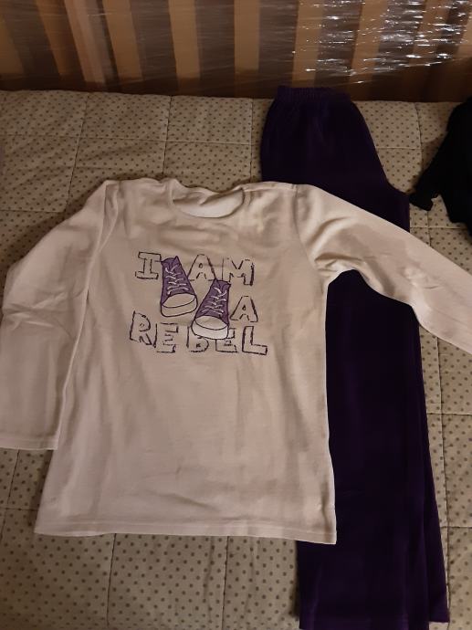 Prodam zelo dobro ohranjeno pižamo št.12, iz pliša,zelo mehka in topla.Dolžina hlač je 90, pas 25,5, bluza dolžina 57, rame 35 cm. Pošljem tudi po pošti,+3 eur. Info 041 359 339.