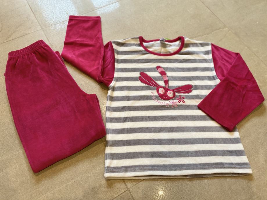 Prodam NOVO (še z deklaracijo) prijetno, mehko flis PIŽAMO - komplet za spanje: zgornji del v belo/sivi črtasti kombinaciji, s prikupnim ciklam kačjim pastirjem na prvi strani + spodnji del v ciklam barvi. Velikost: 6.