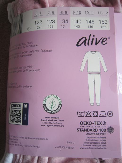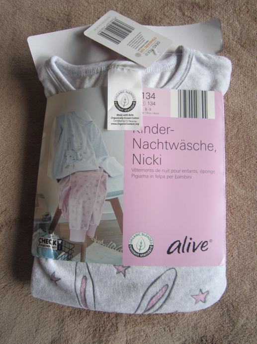 Dekliška pižama iz bio bombaža št. 134 za deklico, staro 8-9 let. Nova, nikoli oblečena. Iz ekološkega bombaža, mehka in topla.