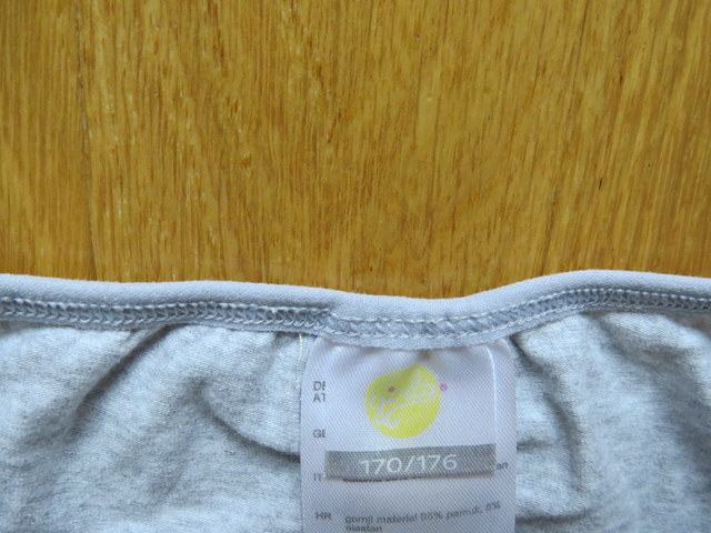 Prodam spodnje hlačke, hlače št. 170/176 (DEJANSKA VELIKOST JE ŠT. 152), svetlo sive barve z napisom.