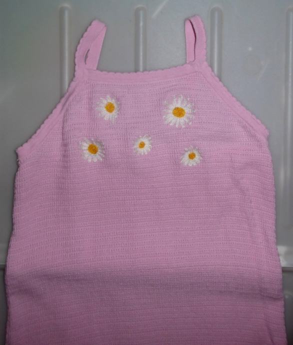 Je nekaj posebnega, čisti bombaž, z vezenino rožic, videz kvačkane obleke, roza barve.