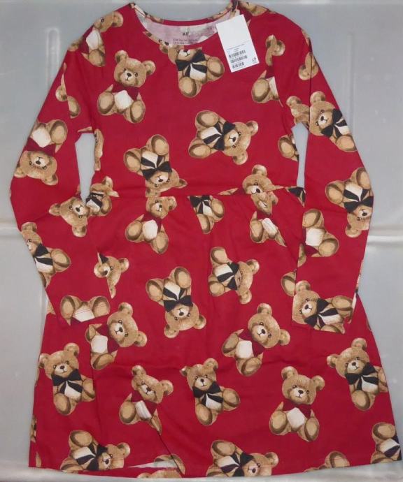 NOVA dekliška obleka z dolgimi rokavi medvedki H&M 134/140, 8-10 let