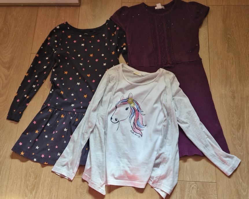 Prodam zelo dobro ohranjen komplet 2 oblek dolg rokav + majico za puncko, vel.122/128.