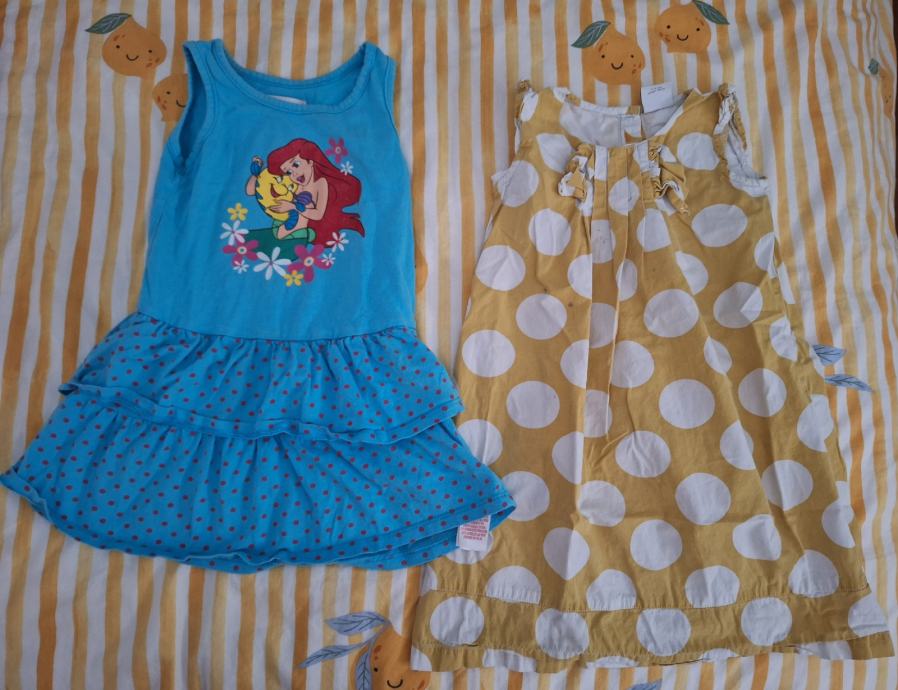 - 3 x oblekica (1x Disney, ostale Next - rumena s pikami ima nekaj madežev, lahko da bodo šli s pranjem ven - to podarim poleg)