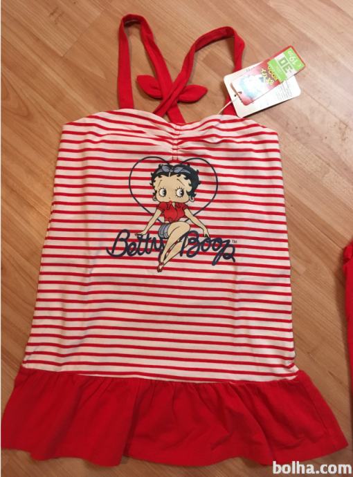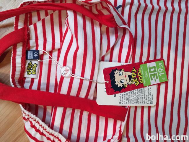 Prodam NOV komplet Betty boop priznane znamke Original marines primeren za 10let oz 140cm. Je nov z etiketo! Cena ne bila 28eur znižana na 19eur, prodam za 9eur.