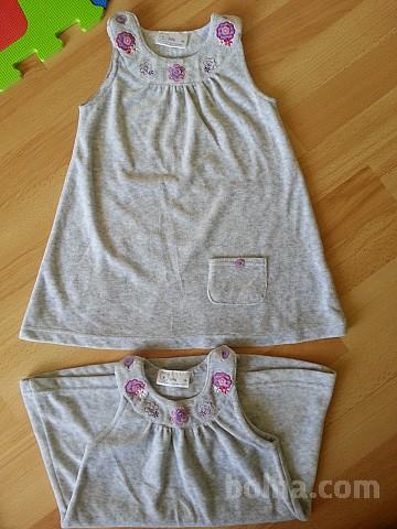 Kot novi in v živo še lepši plišasti oblekici 74 in 80 (mi smo ju nosili hkrati, ni velike razlike), nosljive tudi dlje...lepe nežno sive z vijola rožicami in gubki.....cena za eno je 4€...