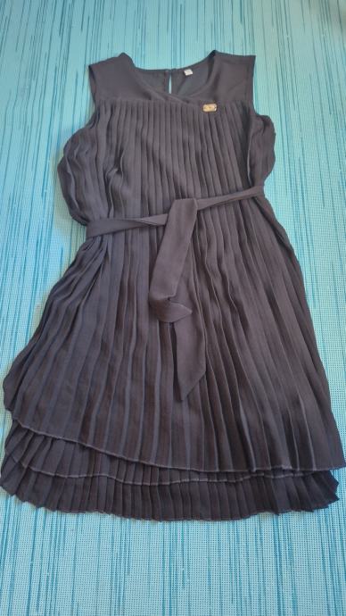 Temno modra plisirana oblekica št.134 s pasom. Primerna za praznovanja, nastope. zelo lepa, samo parkrat nošena, kot nova, Lahko se jo nosi tudi brez pasu.