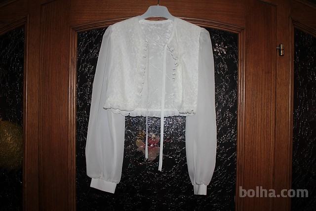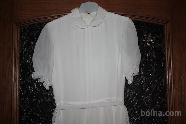 dolga obhajilna obleka s kratkimi rokavi ca 140/146 z bolerom z dolgimi rokavi