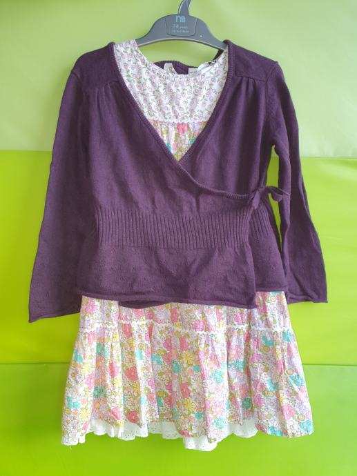 Prodam izredno lepo ohranjen komplet - slovesno poletno oblekico brez rokavov in jopico. Oboje je kot novo, oblekica nošena 1×, jopica pa le nekajkrat za posebne priložnosti. Zelo ljubek komplet, super za družinska praznovanja, srečanja ali kako slovesnost. Oblekica ima rožast vzorec, spodaj krilo obrobljeno s čipko, H&M št. 116, za 5-6 let. Jopica je vijolične barve - odtenek jajčevca, Okaidi št. 114, za 5-6 let.