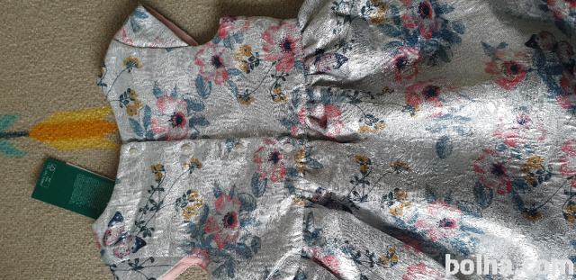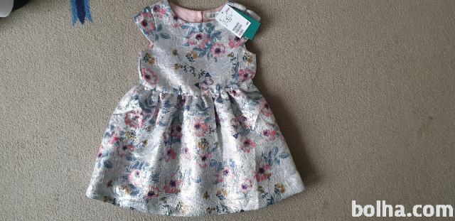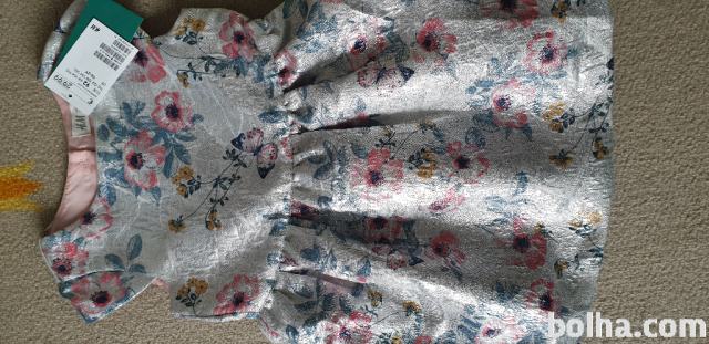 Nova, čudovita oblekica hm 92, primerna tudi za kakšen svečan dogodek ali praznovanje...svetleča z metulji in cvetlicami...nova je bila 30€, prodam jo za 20€