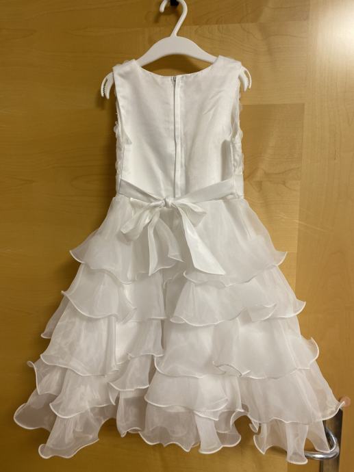 Prodam zelo lepo dekliško obleko, primerno za poroko ali obhajilo. Velikost 120, dolžina malo čez kolena.