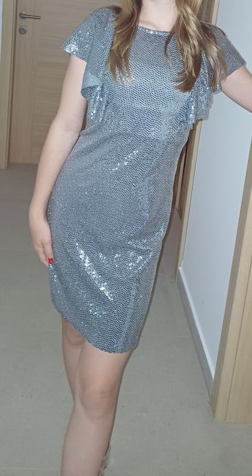 Prodam krajšo srebrno obleko znamke Zara, št.164, primerno za starost 13-14 let.