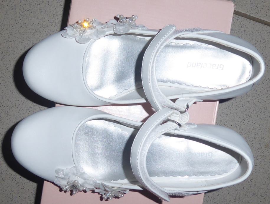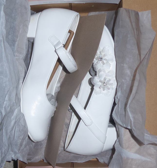 5€ popusta na te čevlje, če kupite še kakšno obleko za 1. obhajilo (kupili smo 3 za našo deklico, rabili le eno, torej sta 2 čisto novi, še z etiketami).