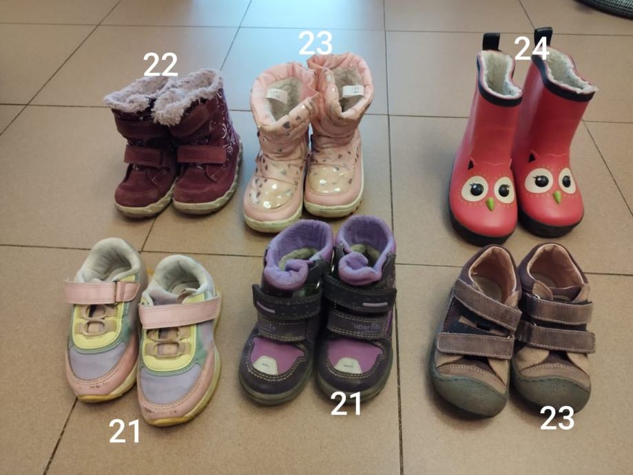 Podarim čevlje, copate in škornje na slikah. Številke so napisane na sliki. Čevlji so očiščeni in seveda kažejo znake obrabe, a so še vedno lepo ohranjeni.